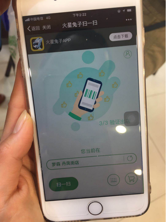 顧客選購商品時(shí)只需通過火星兔子微信公眾號(hào)或APP掃描商品二維碼加入購物車,選購?fù)瓿珊筮M(jìn)入支付頁面,選擇用微信或支付寶付款,付款完成后自動(dòng)生成聚合碼,將該聚合碼出示給工作人員掃描后即可離店。